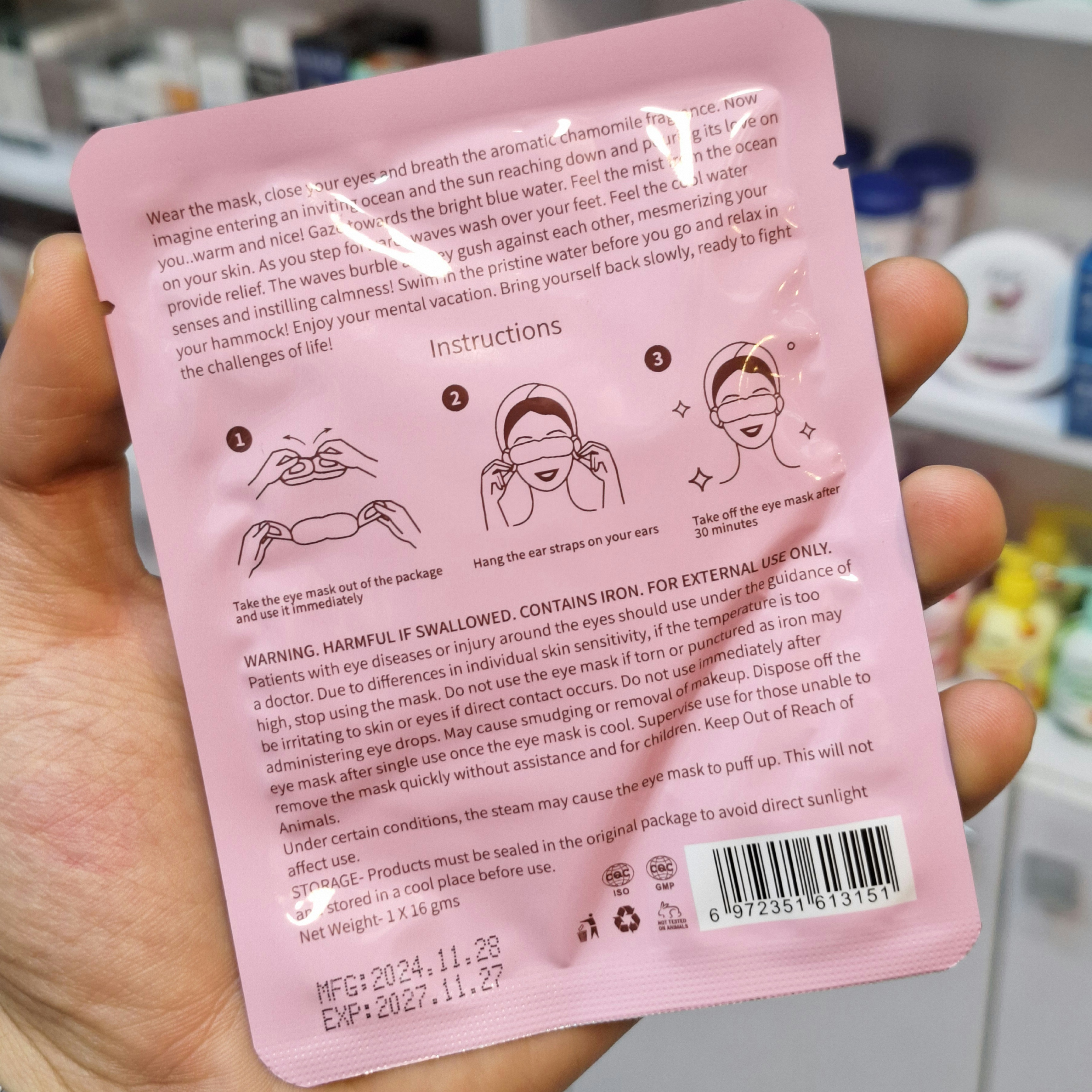 اگه روزانه استفاده زیادی از گوشی و لپ تاپ داری این ماسک رو بهت پیشنهاد میکنم.این ماسک چشمِ حرارتی و یکبار مصرف طراحیشده برای استفاده آسان و سریع، بدون نیاز به برق یا شارژپس از باز شدن بستهبندی، واکنش شیمیایی داخلی سبب تولید گرمای ملایم حدود ۴۰ درجه میشود که طی ۱۵ تا ۲۰ دقیقه ادامه دارد.